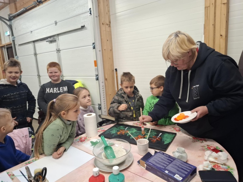 Pamokos metu mokiniai su operatore K.Smachtina padarė rudeninį paveikslėlį, panaudojant gamtines medžiagas ir atliekas. Prisiminimui vaikai gavo dovanėles – žaisliukus.