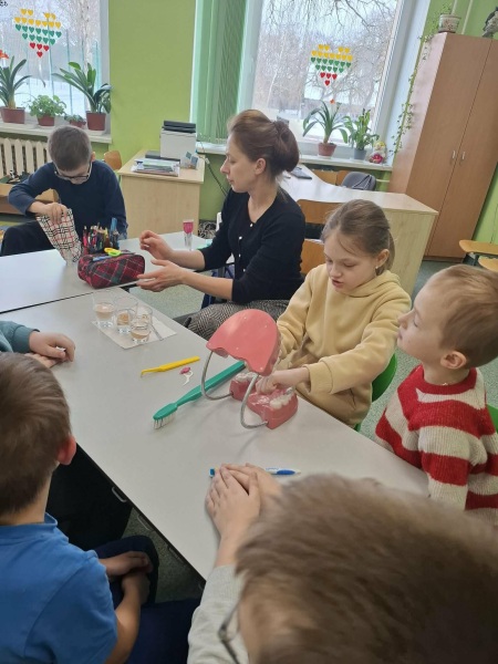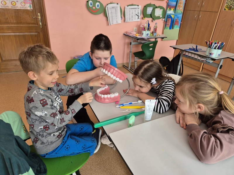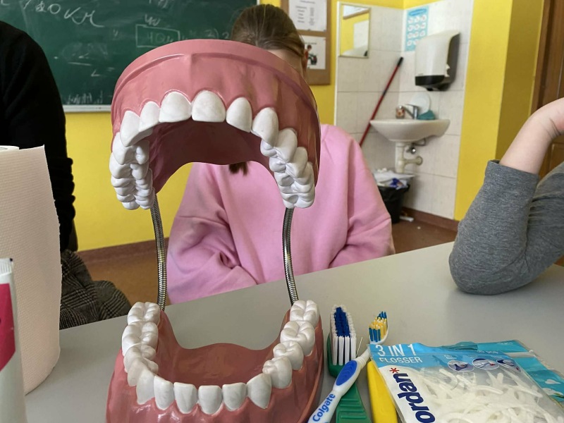 Šiandien su pradinukais kalbėjomės apie tai, kaip svarbu rūpintis savo dantimis ir kaip galime juos kuo ilgiau išsaugoti sveikus. Aptarėme, kodėl reikia reguliariai valyti dantis. Taip pat atlikome eksperimentą, demonstruojantį, kaip bakterijos veikia dantų emalį.