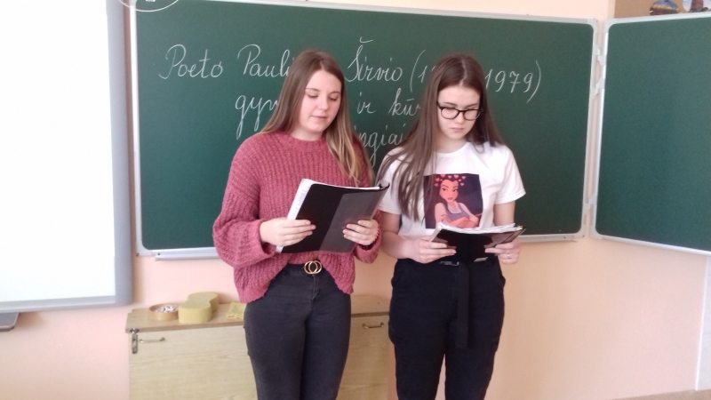 Prasidėjo lietuvių poeto Pauliaus Širvio jubiliejiniai metai – rudenį minėsime jo 100-metį. Todėl 9 klasės mokiniai, kuriems šis autorius įtrauktas į rekomenduojamos skaityti literatūros sąrašą, keletą mėnesių rengę projektą „Pauliaus Širvio gyvenimo ir kūrybos vingiais“, vasario 26 d. jį pristatė 7, 8, 10 klasių moksleiviams.